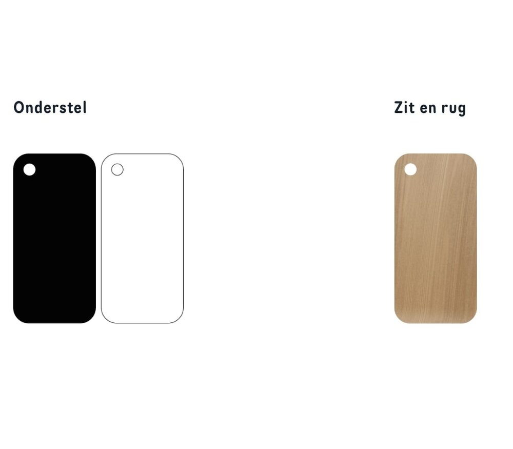 - Materiaal: Gebogen beuken multiplex, natuurlijk eikenfineer aan beide zijden, beschermende laklaag