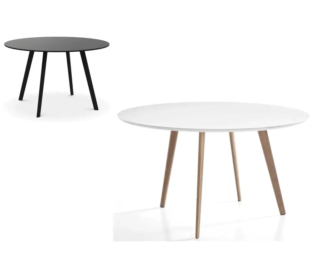 De pilo tafel bestaat in vier verschillende afmetingen en twee kleurencombinaties: de ronde tafel van 120Ø cm, de vierkante tafel van 139 x 139cm en de twee rechthoekige tafels van 165 x 85cm, 200 x 90cm. Zowel in het geheel zwart als in het naturel poten met wit tafelblad is de Pilo verkrijgbaar. Met een hoogte van 74 cm is de Pilo Magis zowel geschikt als eetkamertafel, vergadertafel of als horeca-tafel (hotel-restaurants-café). Verder heeft de houten tafel essenhouten poten met een blad dat afgewerkt is in HPL. Het blad en de poten worden verbonden met een stalen verbindingsstuk in het grijs of zwart. De Magis Pilo tafel is prachtig in combinatie met de Pila stoelen die ook verkrijgbaar zijn bij Brand New Office.