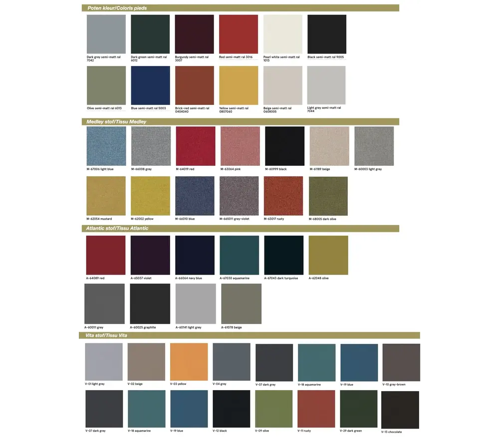 - Soorten stof: Atlantic 100% Polyester(530/m2), BS EN ISO 12947-2, 110,000 Martindale cycles, Ontvlambaarheid (BS EN 1021-2 Match, CA TB 117-2013, BS EN 1021-1 (sigaret) Klasse Uno UNI 9175 Klasse 2, EMME), Medley 100% Polyester(510 g/lm) - Acoustic test sound absorption(ISO 354) - Ontvlambaarheid (BS EN 1021-2 Match, CA TB 117-2013, BS EN 1021-1 (sigaret) Klasse Uno UNI 9175 Klasse 2, EMME), Afwasbare Vita stof die bestaat uit 50%, Polyester 50% Katoen(850g/M2), Ontvlambaarheid (BS EN 1021-2 Match, CA TB 117-2013, BS EN 1021-1 (sigaret) Klasse Uno UNI 9175 Klasse 2, EMME)