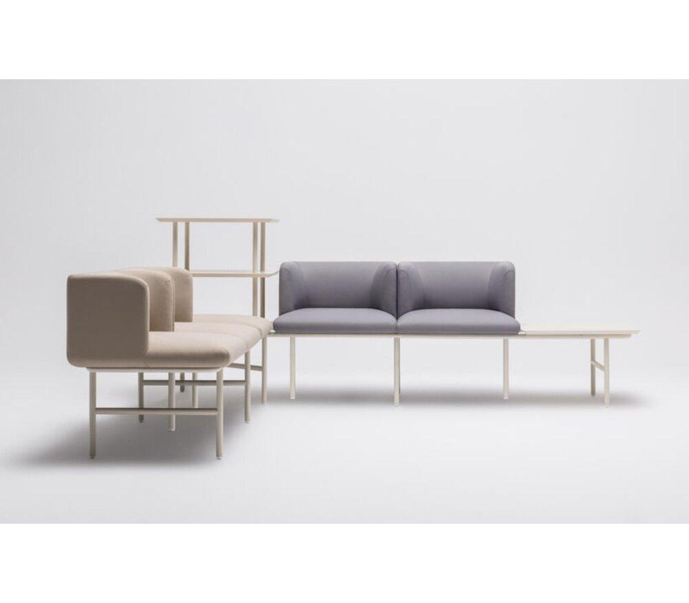 - Diversiteit aan configuraties: De keuze uit verschillende componenten biedt de mogelijkheid om de bankconfiguratie volledig aan te passen aan de behoeften van de ruimte. Of het nu gaat om een eilandopstelling voor grotere ruimtes of intiemere hoekjes voor gesprekken en ontspanning, Agora past zich aan elke situatie aan.