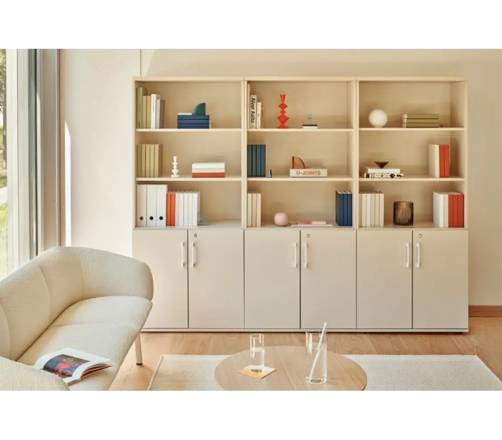 Deze archiefkast is ontworpen voor gebruikers die items willen tentoonstellen die een belangrijke rol spelen in het kantoor, terwijl ze tegelijkertijd voldoende opbergruimte nodig hebben voor documenten en andere kantoorbenodigdheden. Het open vak biedt de mogelijkheid om bijvoorbeeld boeken, decoratieve items of kantoormateriaal zichtbaar te plaatsen, terwijl de gesloten deuren de privacy en veiligheid van opgeslagen documenten garanderen.