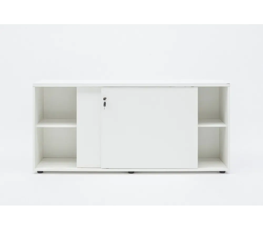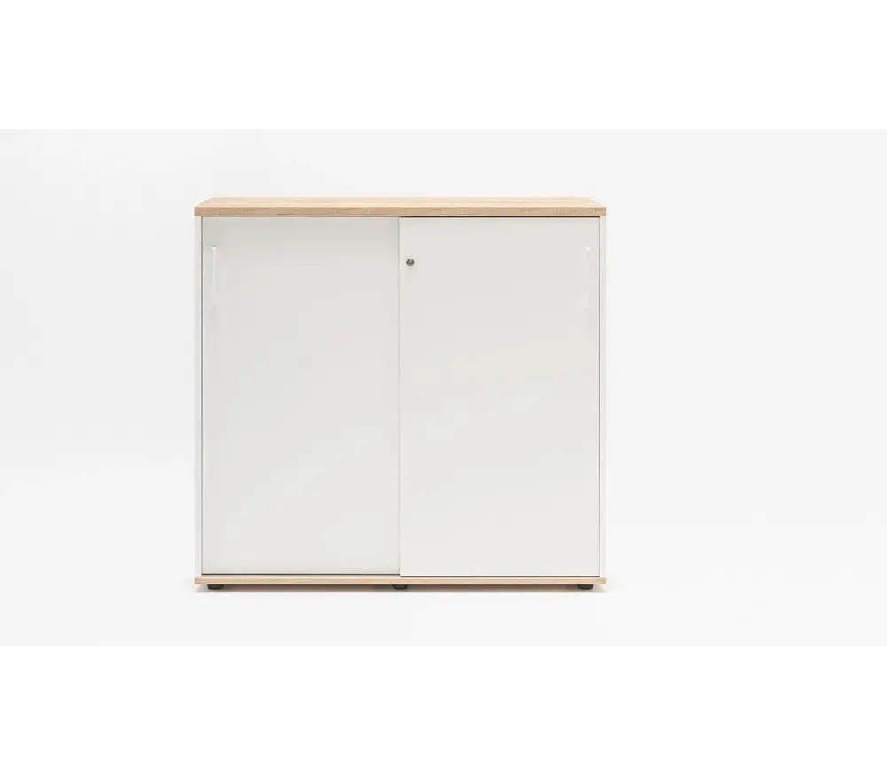 De MDD Basic Roldeurkast Smal Laag biedt een perfecte oplossing voor het efficiënt inrichten van kleinere werkruimtes. Deze kast is gemaakt van 18 mm dik melamine (hout) en is beschikbaar in zes verschillende maten, met afmetingen van 80/100b x 43d x 74h cm. Dankzij de roldeuren neemt de kast geen extra ruimte in beslag, zelfs niet wanneer de deuren volledig geopend zijn.