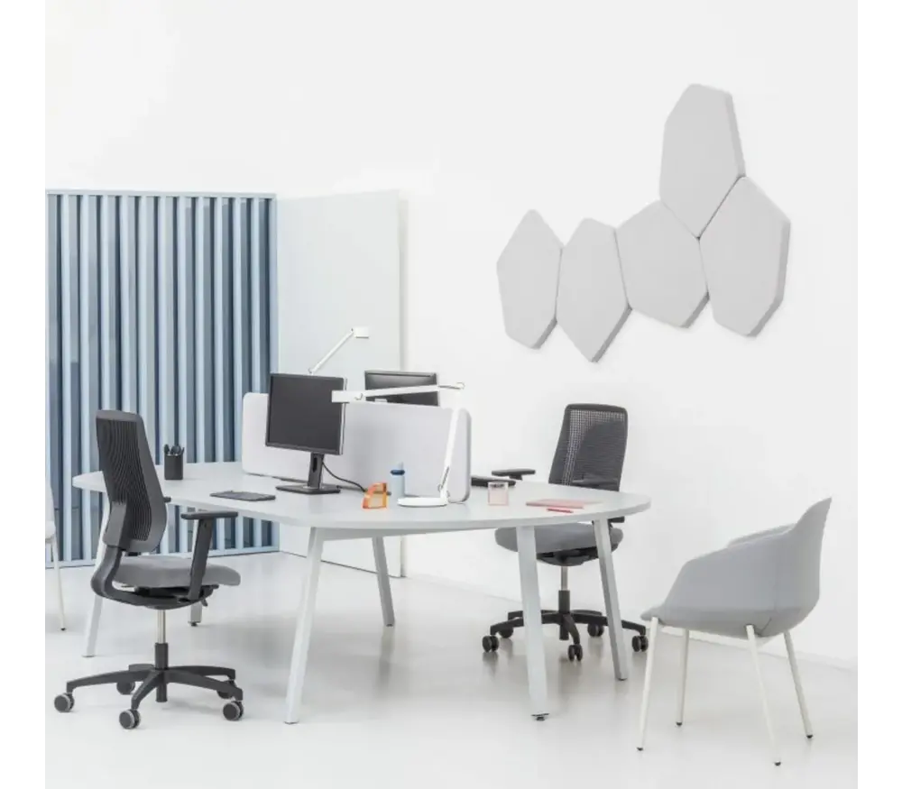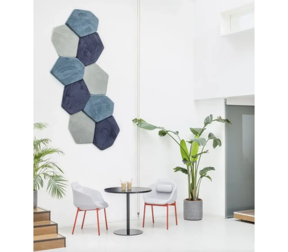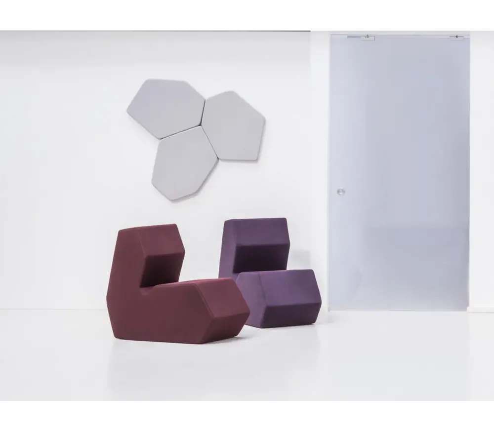 De Mdd Bazalto akoestische panelen voor op de muur zijn ontworpen voor chilloutzones, loungeruimten, maar ze zijn ook ideaal in de openbare wachtkamer of in een entreehal. Ze zijn beschikbaar in twee verschillende hoogten. De onregelmatige vorm van het designmeubilair werd geïnspireerd op zeshoekige steen van Giant's Causeway uit Noord-Ierland.