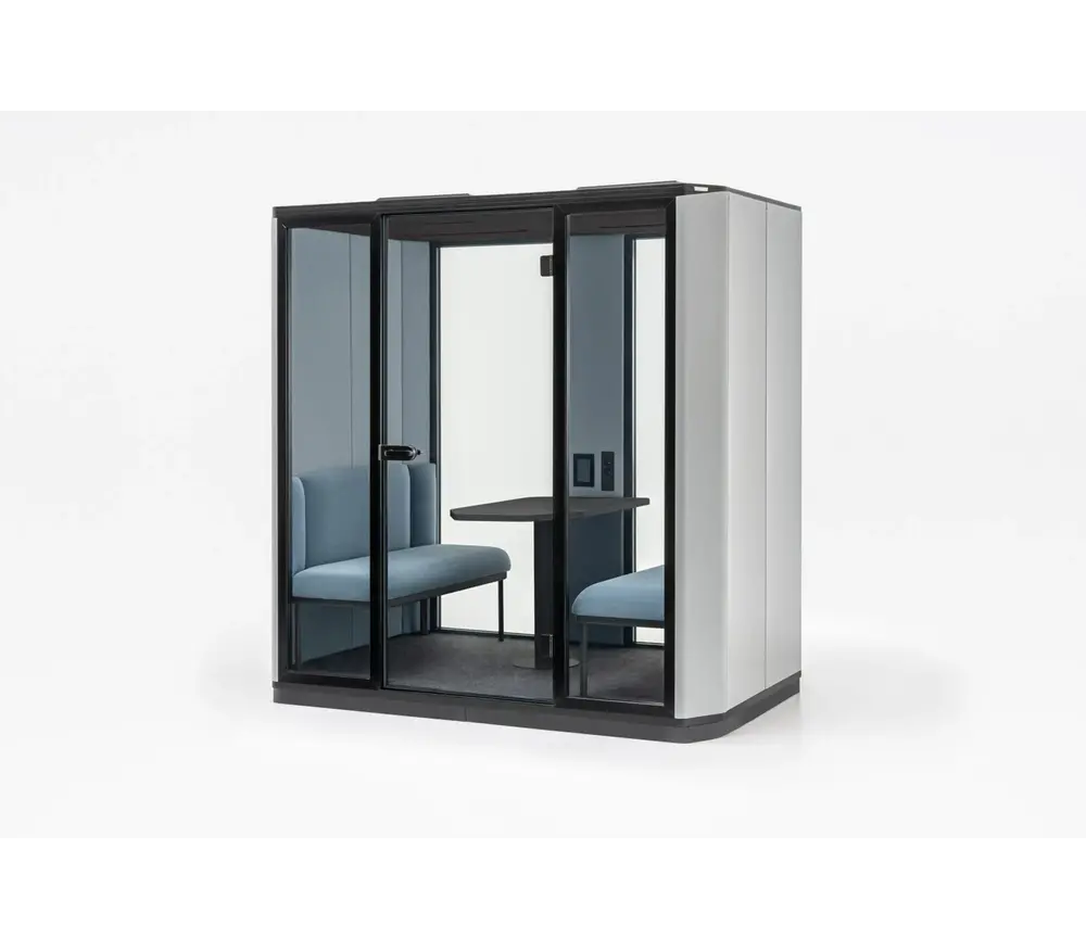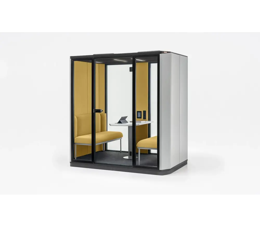 De Mdd Coda verrijdbare akoestische cabine voor 4 personen, ontworpen door Christopher Nobles, ondersteunt de geluidskwaliteit van open kantoren en openbare ruimtes. Door middel van wielen kan deze booth makkelijk verplaats worden!