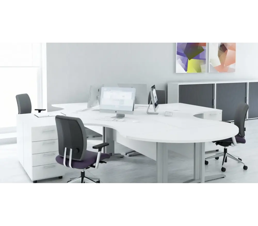 - Flexibele opstellingen: Creëer eenvoudig verschillende werkplekken, van solo werkstations tot vergaderomgevingen.