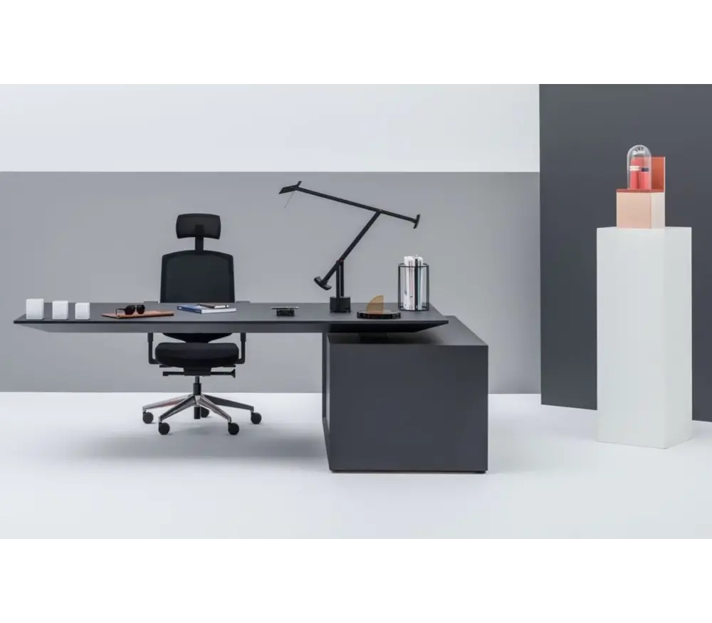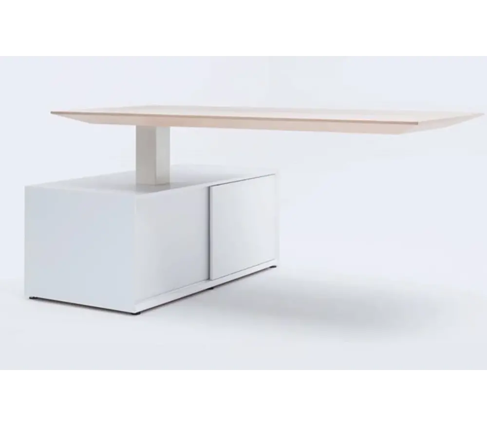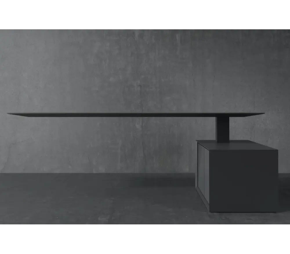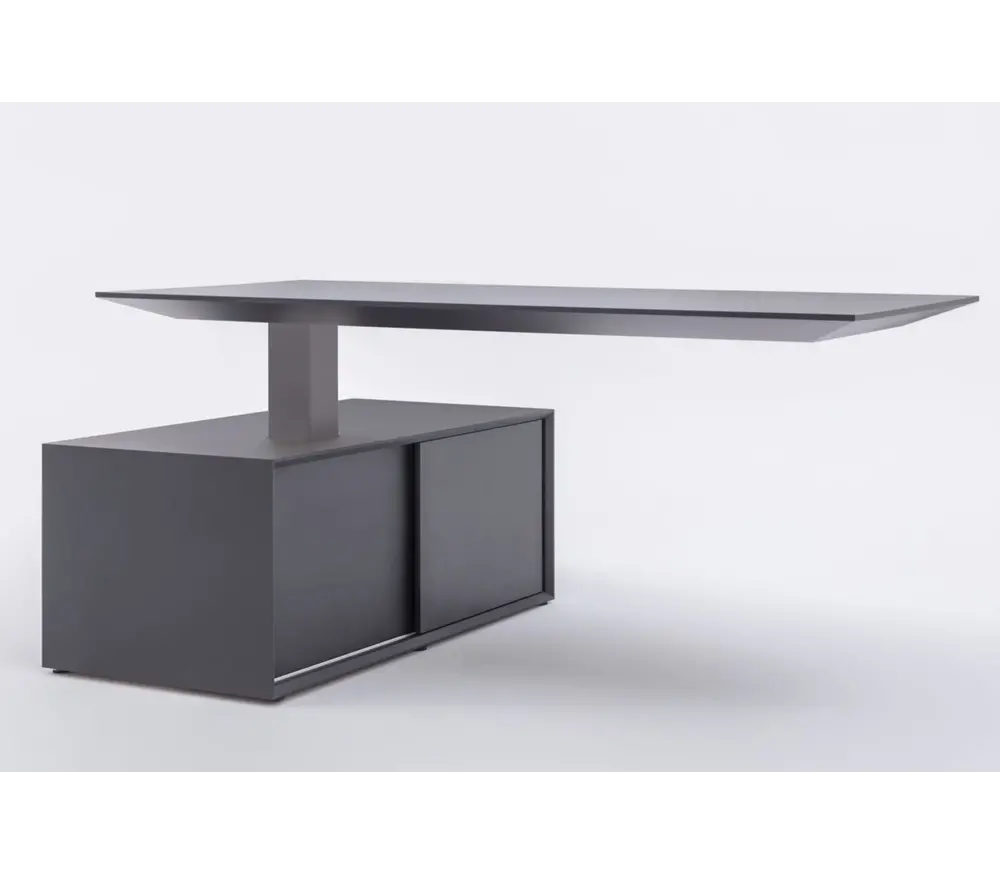 De Gravity collectie is een meesterwerk van minimalisme en technologie. Het bureau heeft een groot werkblad dat lijkt te zweven, ondersteund door één enkele poot en een onzichtbare structuur. Dit geeft een lichte, moderne uitstraling die doet denken aan de essentie van hedendaagse architectuur. Het ontwerp is niet alleen visueel indrukwekkend, maar ook technisch vooruitstrevend.