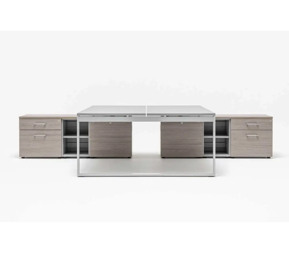 - Ruimtebesparend: Het lowboard biedt extra opbergruimte zonder veel ruimte in beslag te nemen, ideaal voor kleinere werkruimtes.