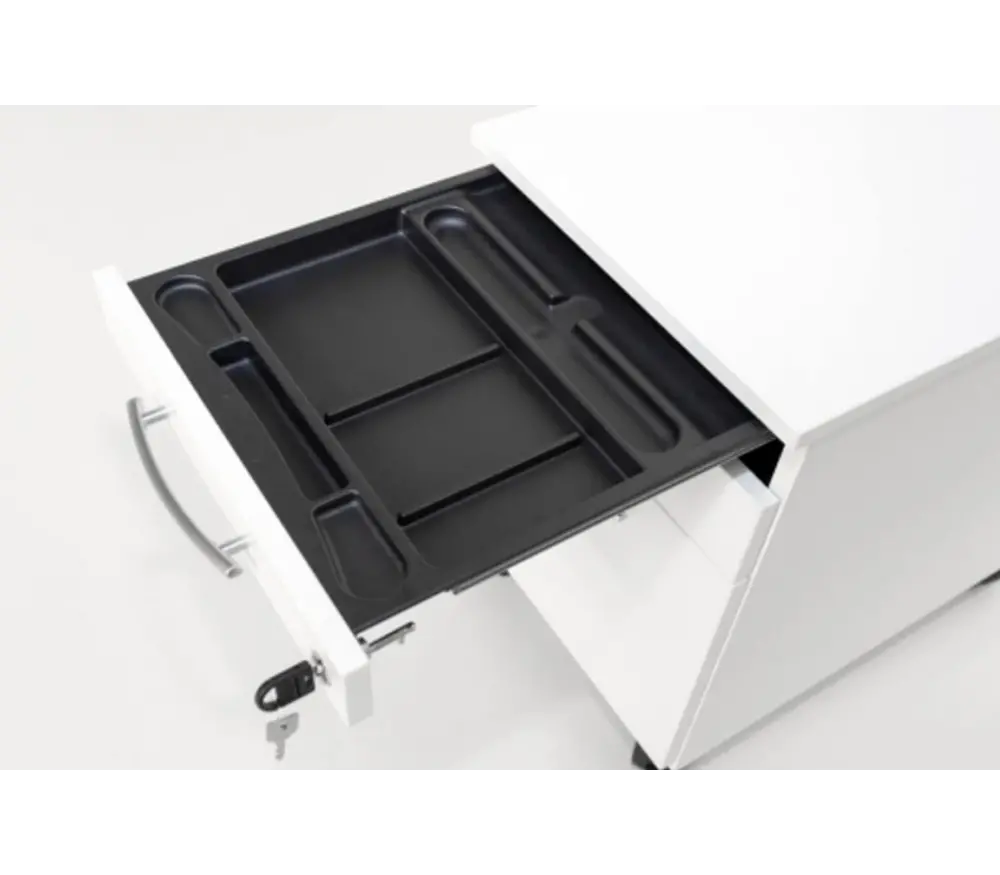 - Ladeblok met drie laden: Deze variant heeft een metalen lade met een pennenlade en twee extra laden voor extra opslagcapaciteit.