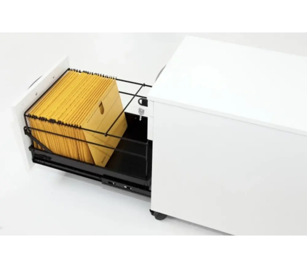 - Ladeblok met hangmappensysteem: Dit model bevat naast de pennenlade een hangmappenlade, ideaal voor het opbergen van documenten in hangmappen.