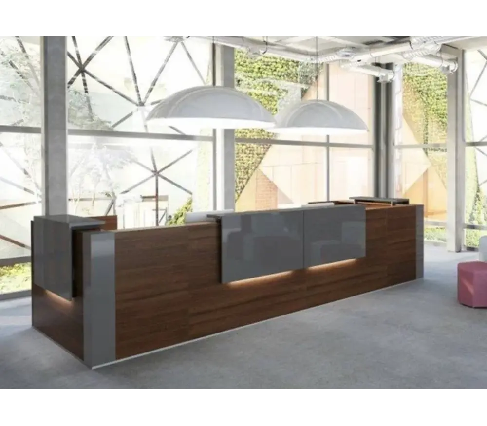 Kies voor een compacte rechte balie, of breid uit met hoekelementen voor een uitnodigende L-vormige receptie.