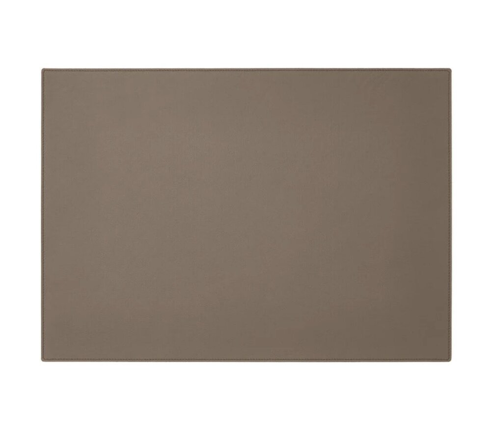 Het oppervlak is vervaardigd uit hoogwaardig echt leder afkomstig uit Italiaanse looierijen. Het leder biedt een aangenaam tactiel gevoel en ontwikkelt met de tijd een karaktervolle patina. De interne kern bestaat uit stevig cellulosemateriaal, wat zorgt voor een stabiele en vlakke structuur. De onderzijde is afgewerkt met een krasbestendige en antislipstof die geschikt is voor verschillende ondergronden zoals hout, metaal en glas.