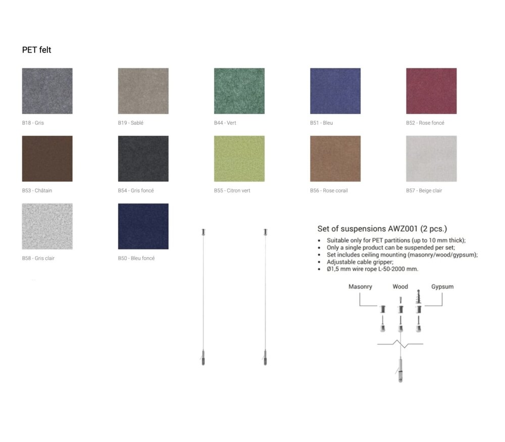 - Duurzaamheid: gedeeltelijk van post-consumer PET en gemakkelijk recyclebaar -Gecertificeerde geluidsabsorptie, NRC = 0,77