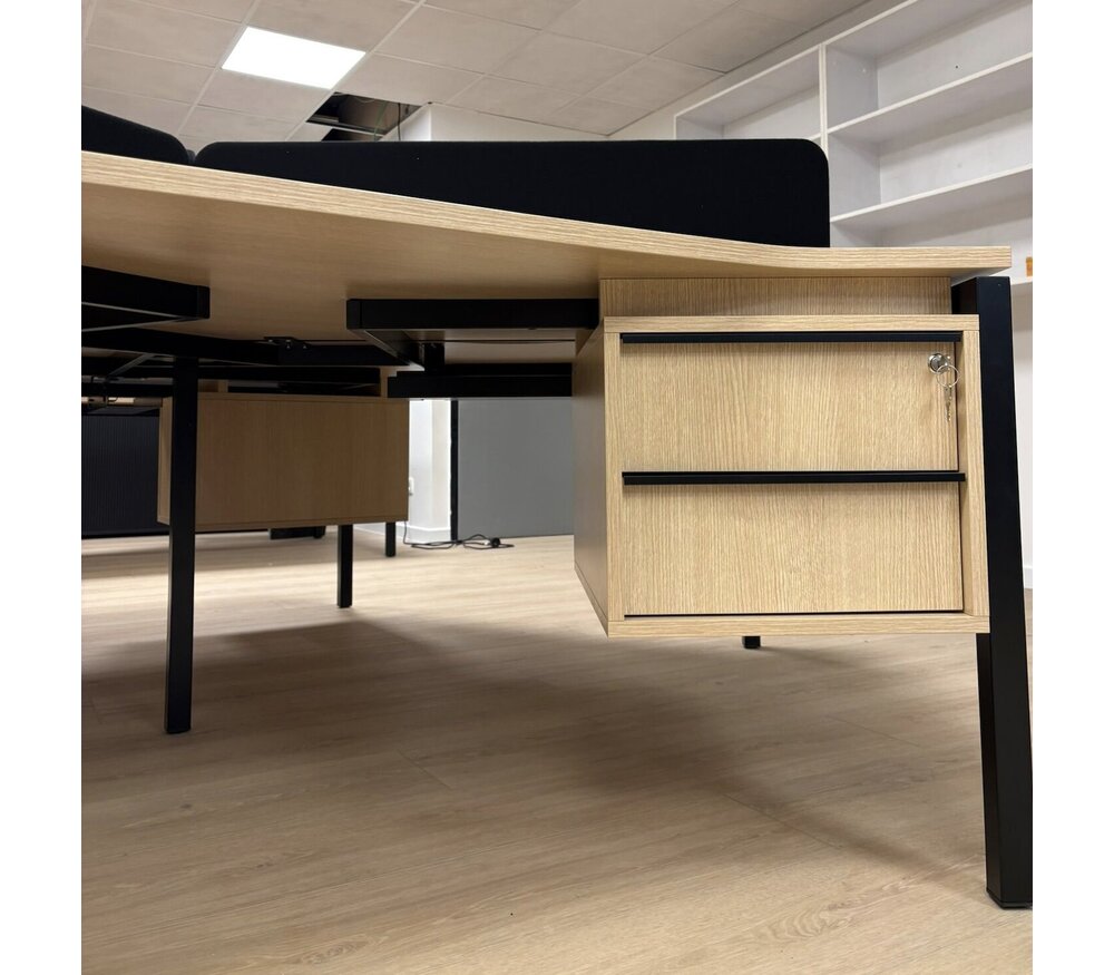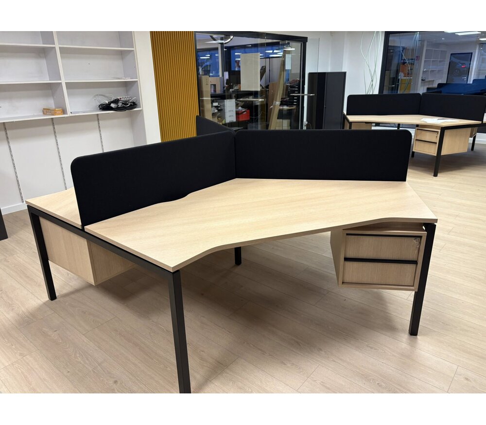 - Maten bureaublad: H: 74cm x B:281,6cm x D:281,6cm