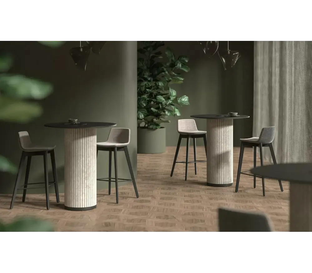 Narbutas Parthos hoge ronde tafel – Elegant ontwerp voor samenwerking met sculpturaal design, slimme kabeloplossingen en duurzame materialen. Perfect voor vergaderingen, restaurants, eetkamers of cafetaria's. Creëer een stijlvolle en efficiënte werkomgeving met deze veelzijdige tafel.