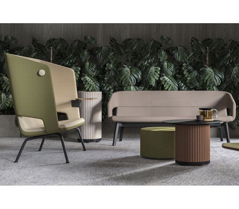 De Narbutas Twist&Sit Soft Lounge zetel hoog combineert expressief design met comfort, ideaal voor kantoorruimtes. Perfect om te ontspannen, communiceren met collega's of even een pauze te nemen. Kies uit diverse stoffen en kleuren voor een warme, uitnodigende sfeer.