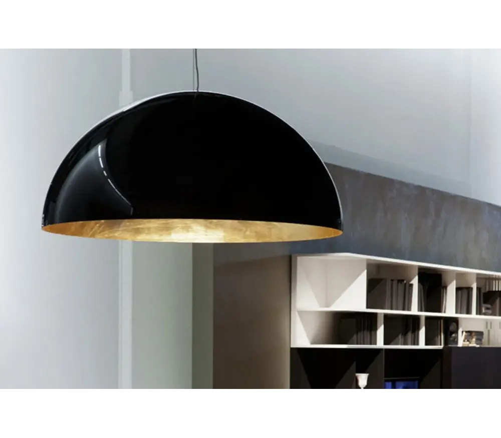 Het verhaal van de Oluce Sonora 490 OR hanglamp , Ø90cm is het verhaal van zuivere halfronde geometrische vormen die ontworpen werden door designlegende Vico Magistretti.