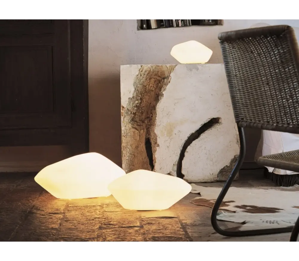 Enkelvoud of in combinatie met andere maten van de Stones design lamp zorgen ze voor een gezellige en ontspannen sfeer. Stones 207-208 zijn gemaakt van wit polyethyleen dat direct en diffuus licht creëert. Bijzonder goed geschikt voor een grote badkamer of een ruime ruimte met vloerverlichting.