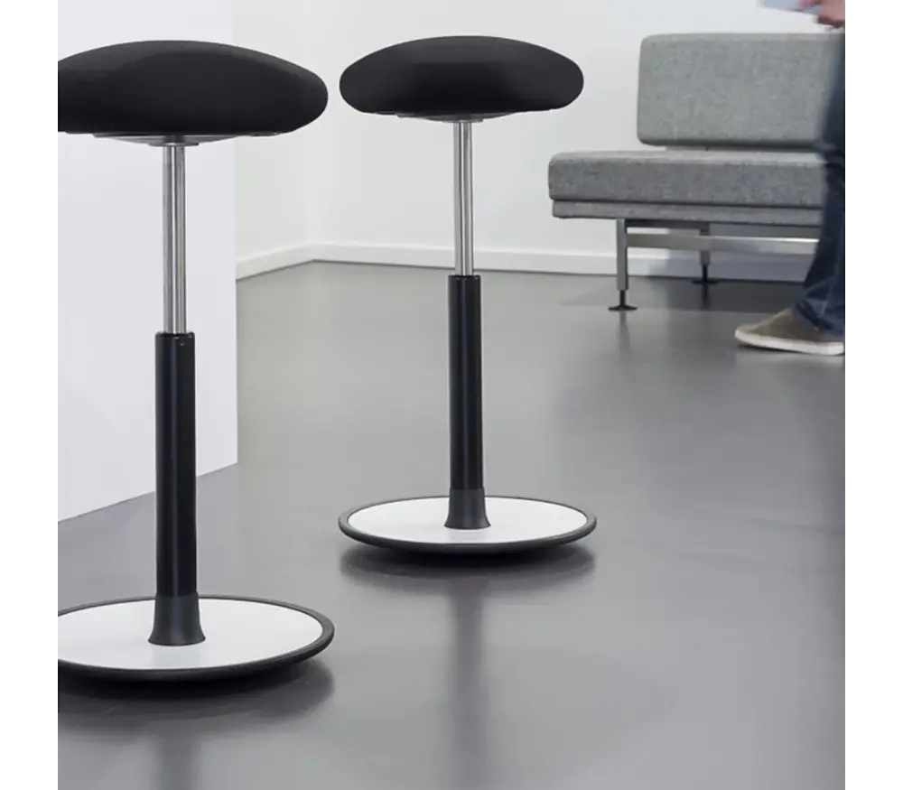 De Ongo Free Zit-stahulp stof is een sta kruk dat speciaal ontworpen is voor in hoogte verstelbare werkplekken.