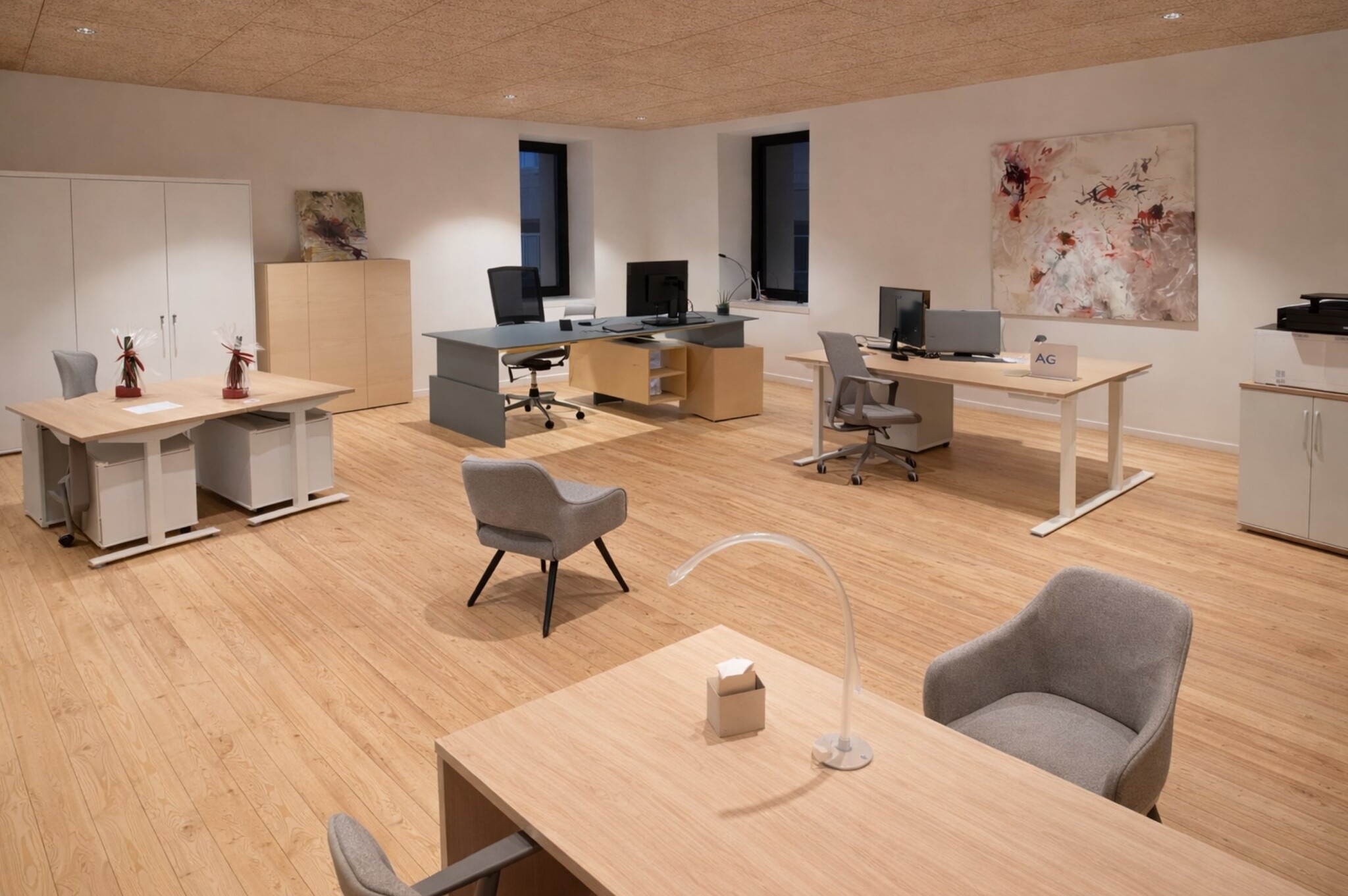 Bij de inrichting werd bewust gekozen voor kwalitatieve kantoormeubelen van gerenommeerde merken zoals