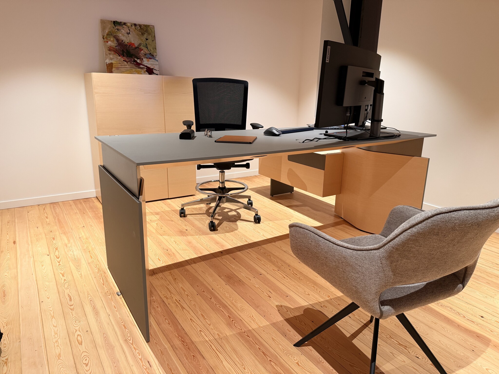 Beide bureaus ondersteunen een ergonomische werkhouding en sluiten perfect aan bij de noden van een directie- en adviesomgeving.