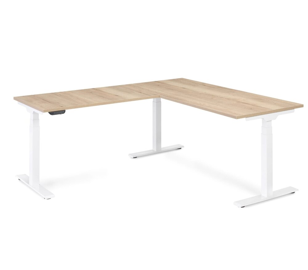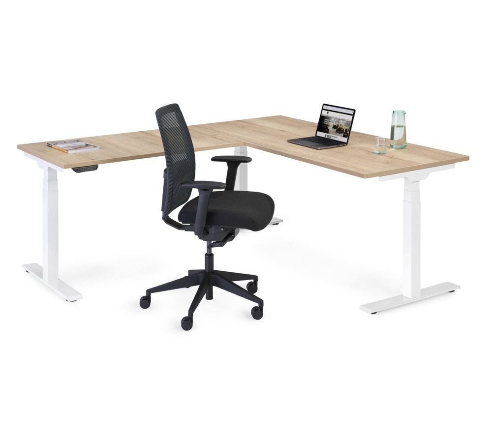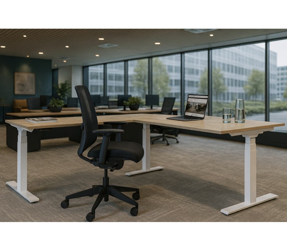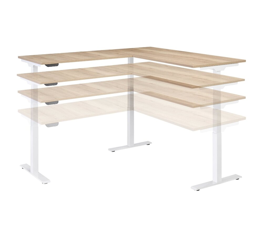 De S-Line hoekopstelling is een innovatieve elektrisch verstelbare werkplek die functionaliteit, ergonomie en stijl moeiteloos combineert. Met een hoofdblad in diverse maten (tot 200 x 80 cm) en een aanbouwdeel van 70 x 100 cm of 70 x 120 cm, creëert deze opstelling een ruime en flexibele werkplek die perfect past in elke moderne kantooromgeving.