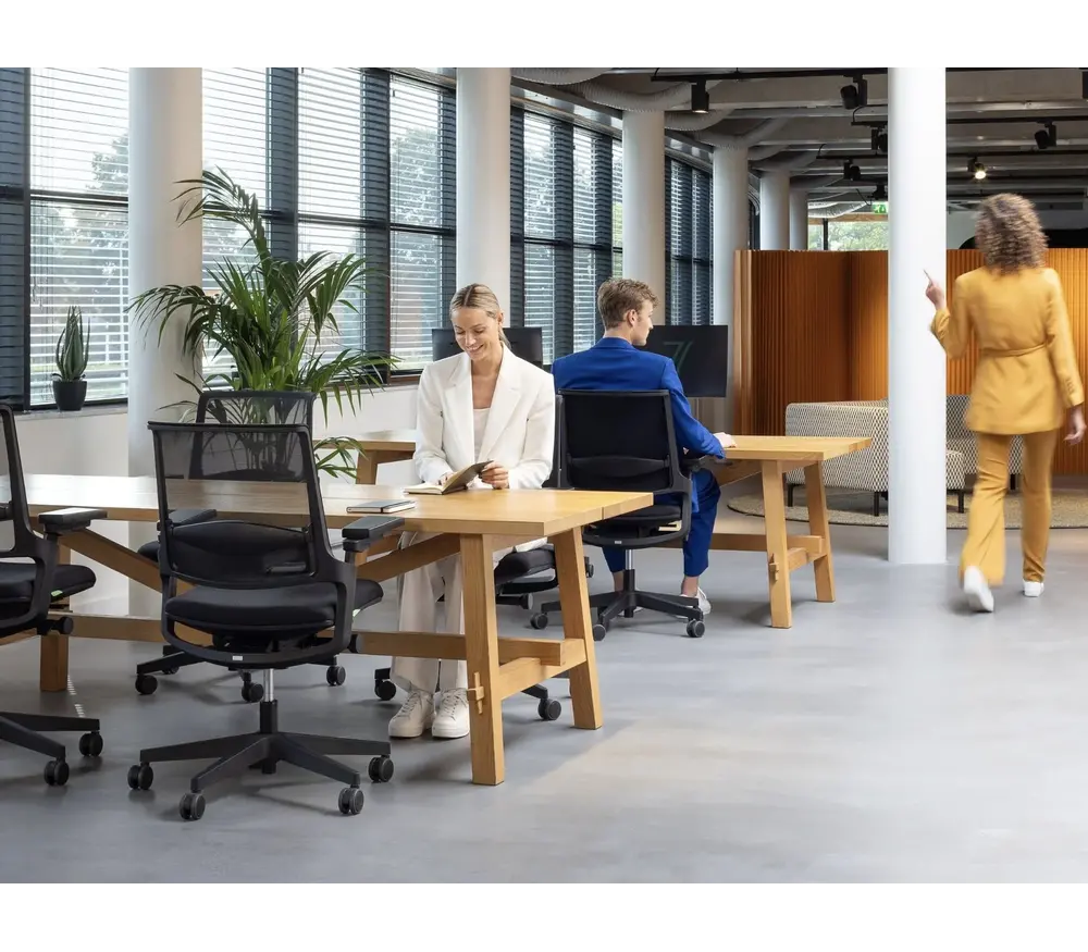 Een goede stoel nodigt je uit om vaak van houding te veranderen, dit noemen we ‘dynamisch zitten’. Zo blijft je bloed stromen en voel je je fitter. Daarbij raden we aan om minimaal ieder uur een pauze te houden of een korte periode staand te werken. Zo werk en leef je écht met plezier.