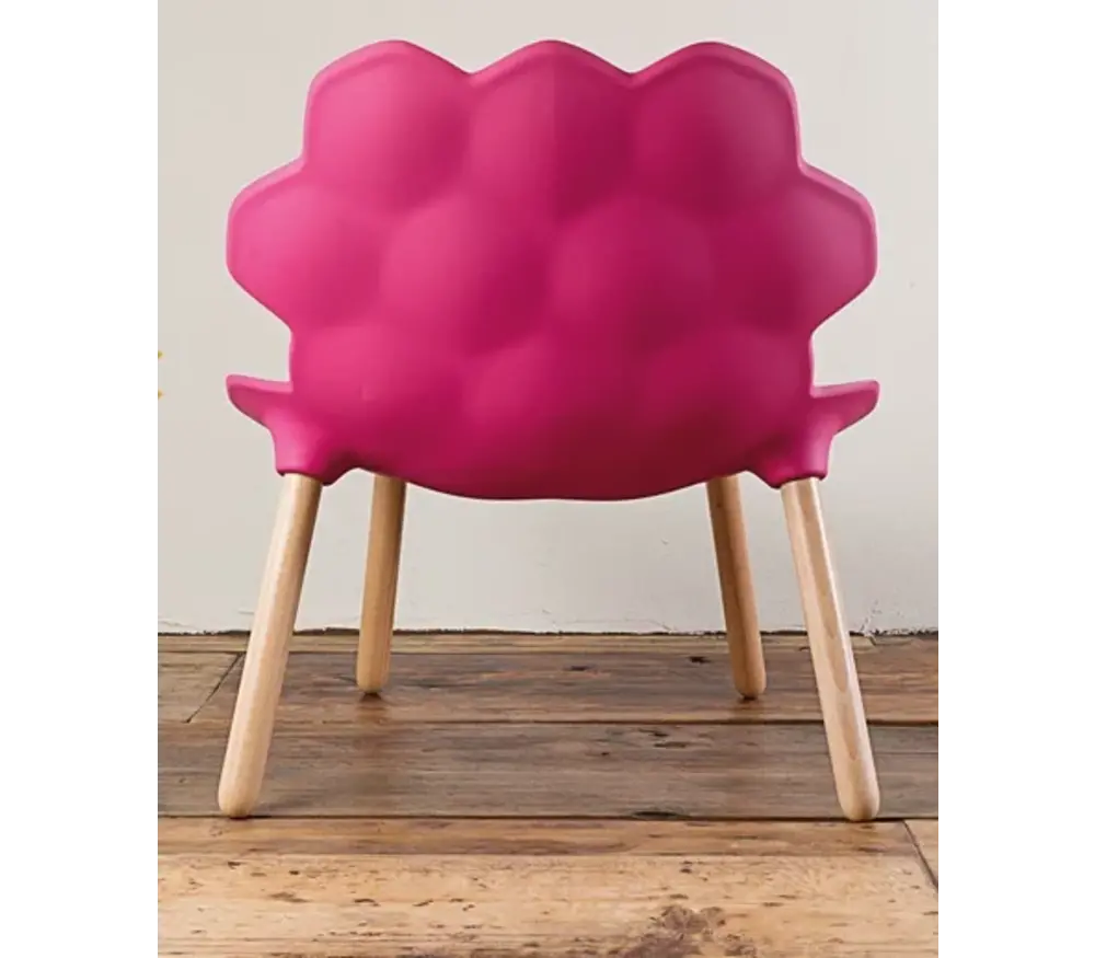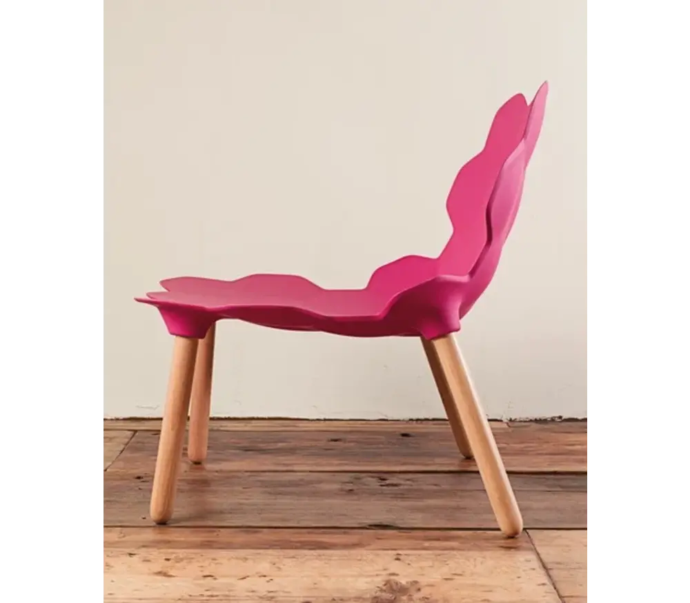 De Slide Tarta stoel is een geïdealiseerde nieuwigheid met het gebruik van polyurethaan in combinatie met houten poten.