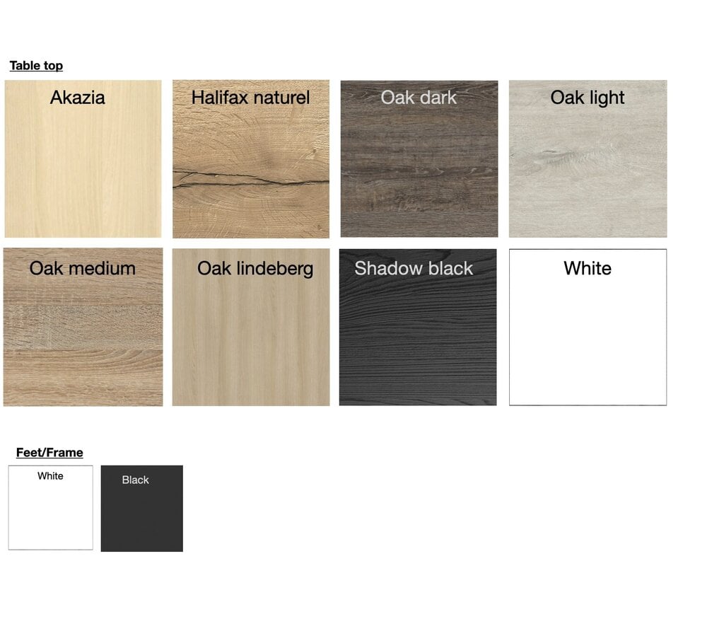 - Materiaal: Melamine spaanplaat (E1) 25mm met PVC rand, gepoedercoat staal, acryl