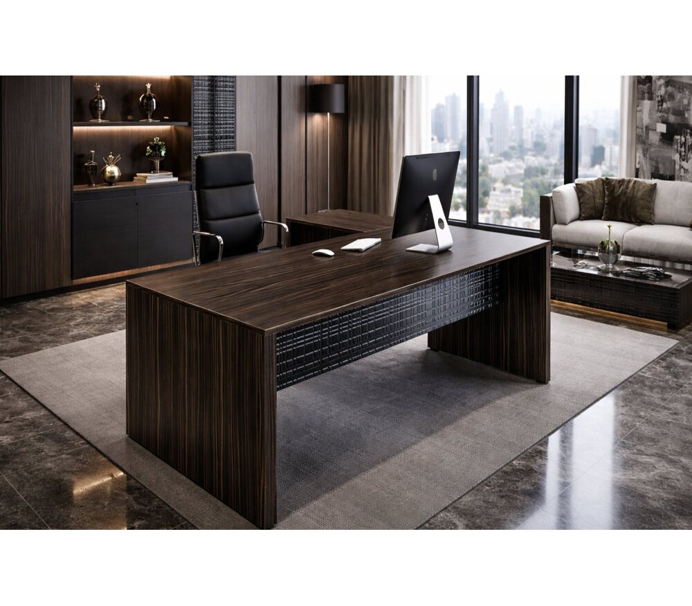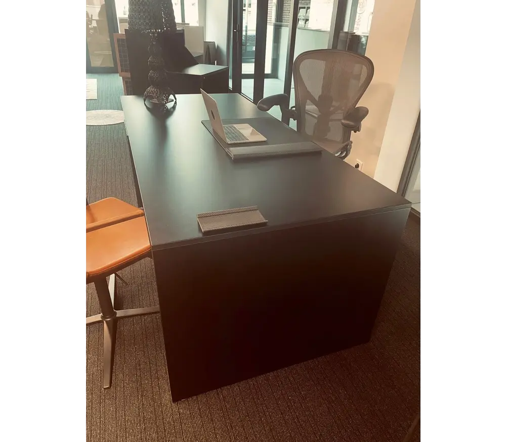 De ruime afmetingen zorgen voor een comfortabele werkzone waarin meerdere activiteiten gecombineerd kunnen worden. Denk aan geconcentreerd werken, overlegmomenten of het ontvangen van bezoekers — alles binnen één coherent en overzichtelijk geheel. Dit maakt het bureau bijzonder geschikt voor directie- en managementfuncties.