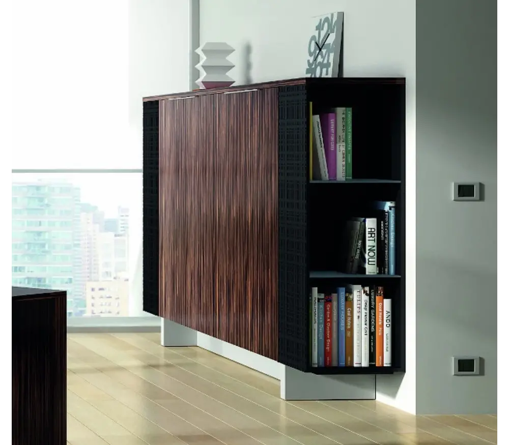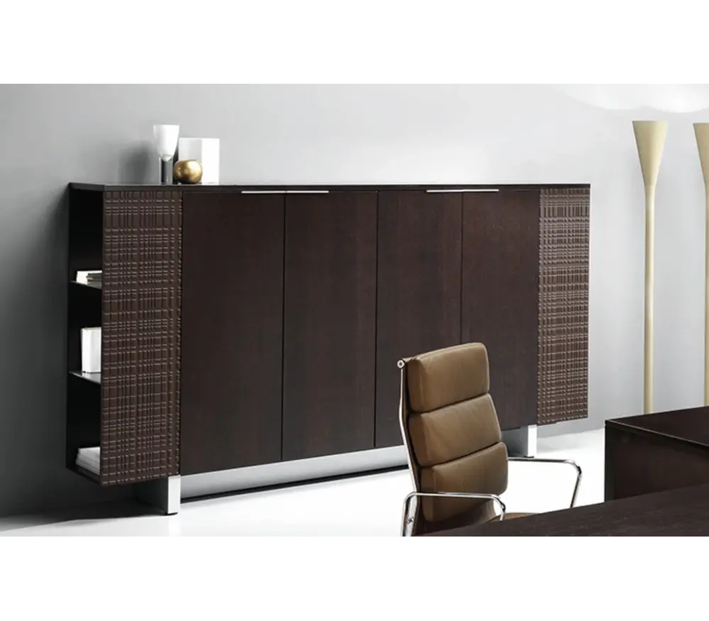Melamine, gelakt melamine of fineer houten deuren onderstrepen de kwaliteit van dit meubelsysteem. Het is mogelijk om de Modi opbergkasten in verschillende kleuren te verkrijgen; van Zebrano hout tot Wengé hout of een in fineer afgewerkte archiefkast. De royale kasten zijn met zijn 170 tot 270cm lengte x 148cm breedte ideaal voor het directiekantoor. Hieronder kan u een aantal foto's terugvinden die dat duidelijker maken.
